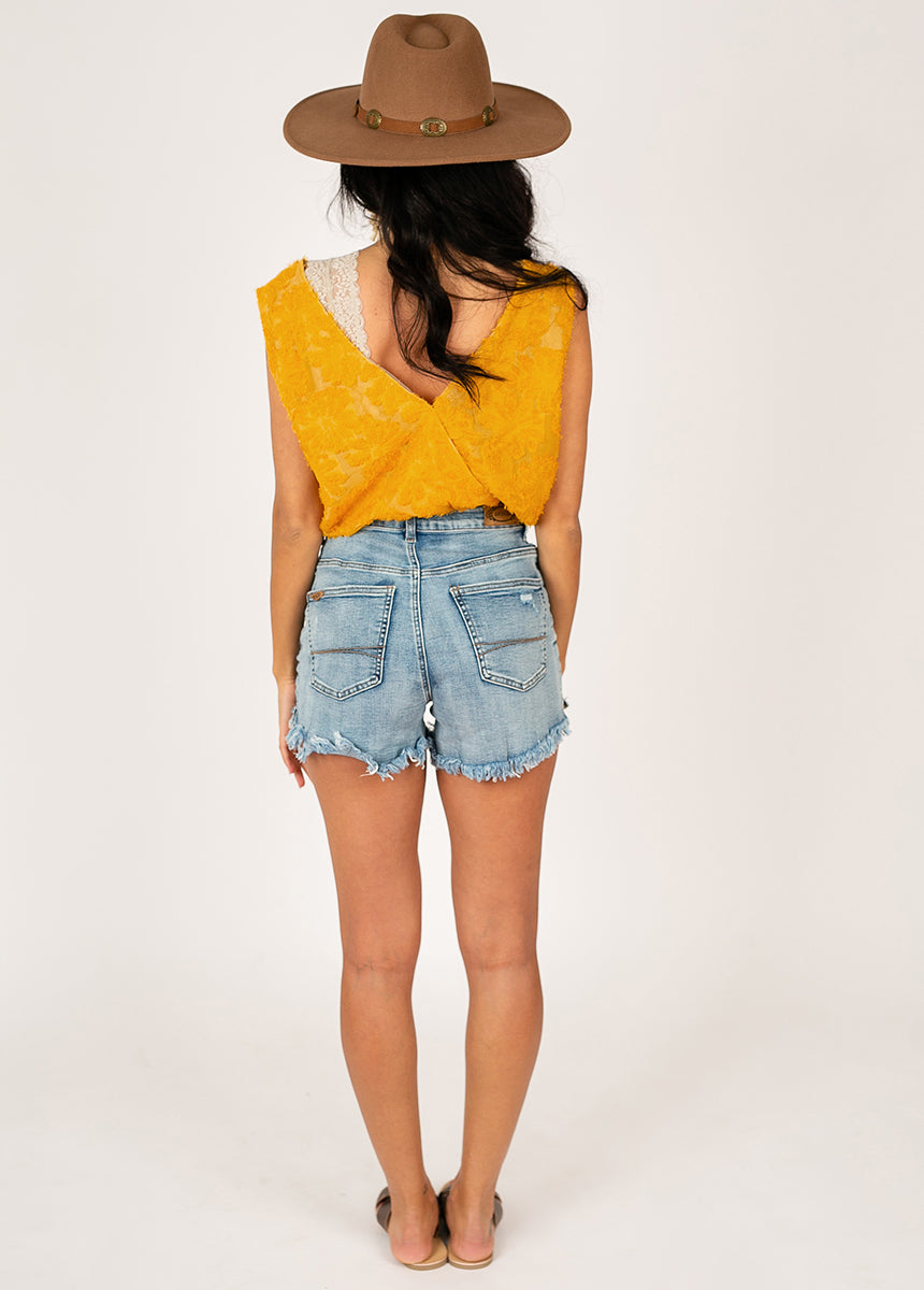This top looks so cute with cut off jean shorts!! I did need to wear a bralette under it but it looked super cute!! Threw on a long gold necklace…perfection!!