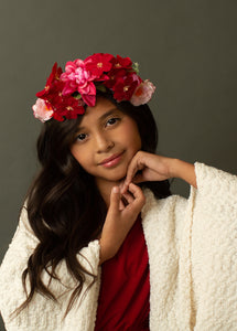 Accessorize in style in this beautifully whimsical flower crown. Colorful blooms are affixed to a comfortable headband for an easy and enchanting hair accessory.