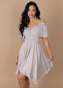 Pretty dress - it's comfortable, fits great, and the style is flattering. I'm usually a US XS and would say the XS is true to size (my measurements are 32-26-36). The material is nice and soft and has a good amount of stretch. The Dove color is a nice light warm gray. Quality is pretty good. I'm overall quite happy with my purchase!