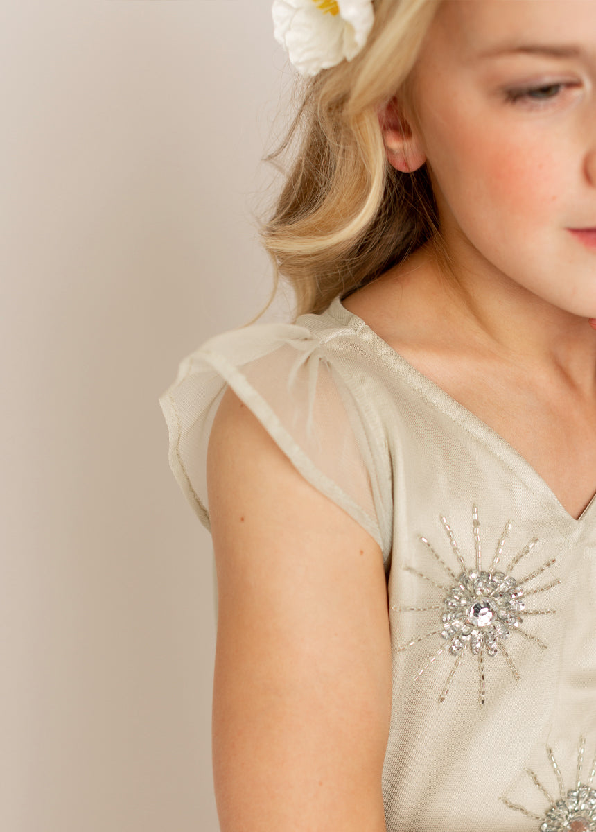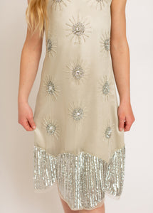 Make a statement in this sparkling Ginger Dress! Embellished with a starburst beaded design while providing style and comfort in equal measure. Put your stellar look on display!