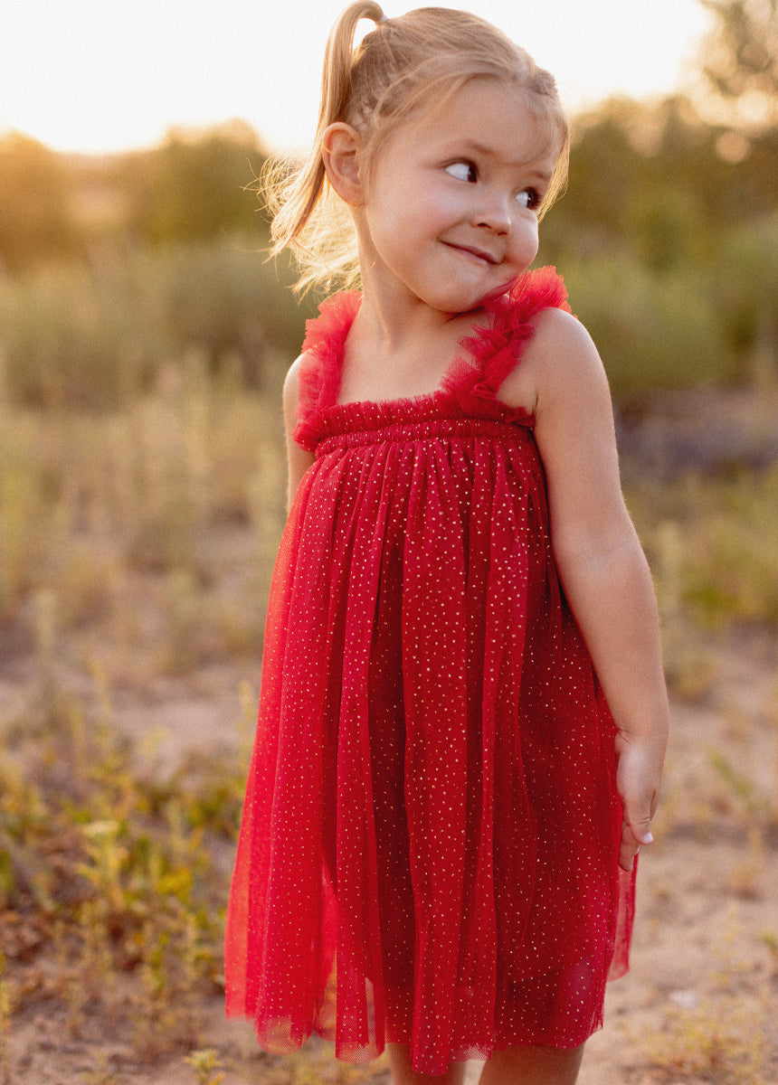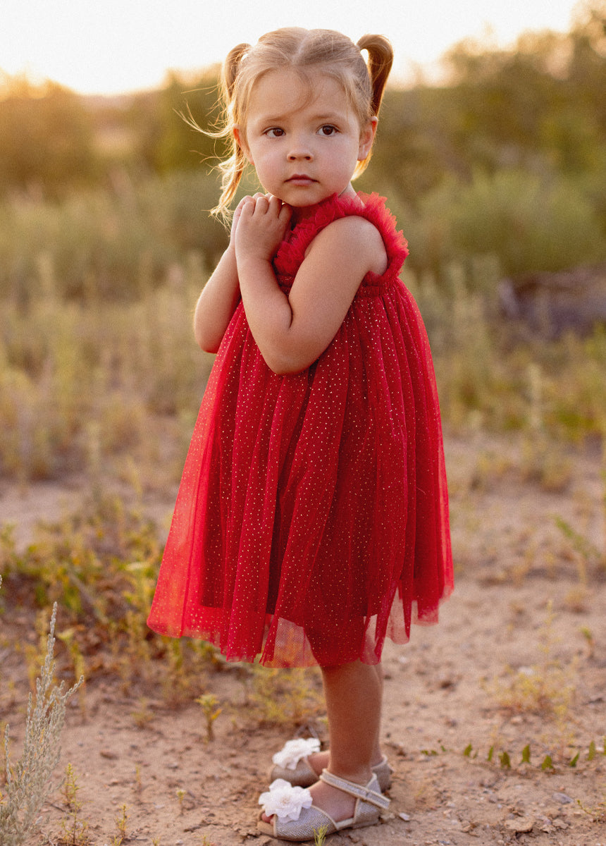 - Metallic dot tulle dress