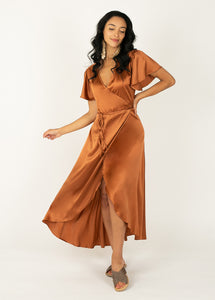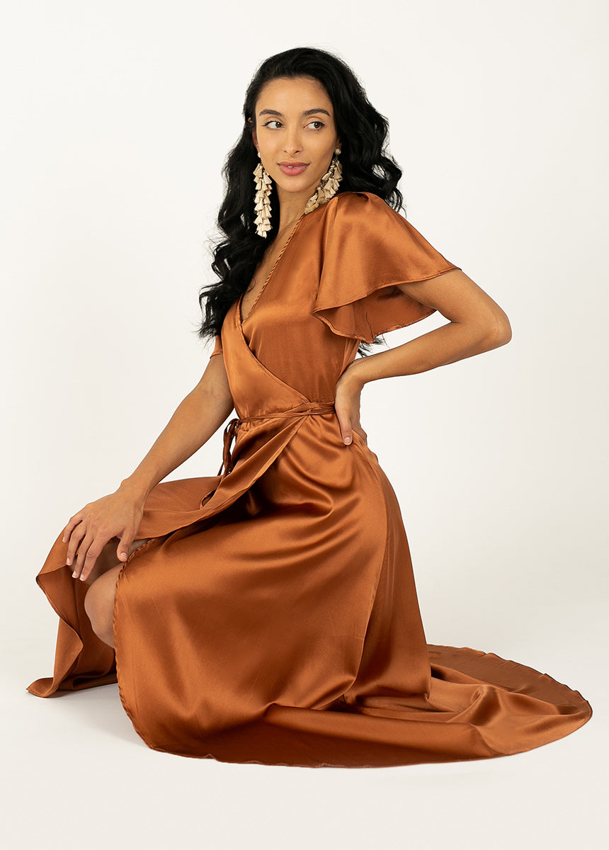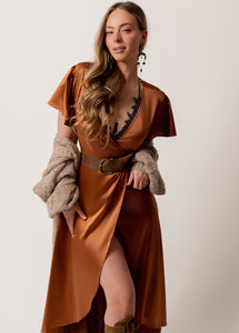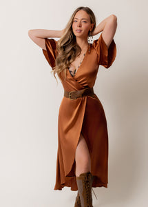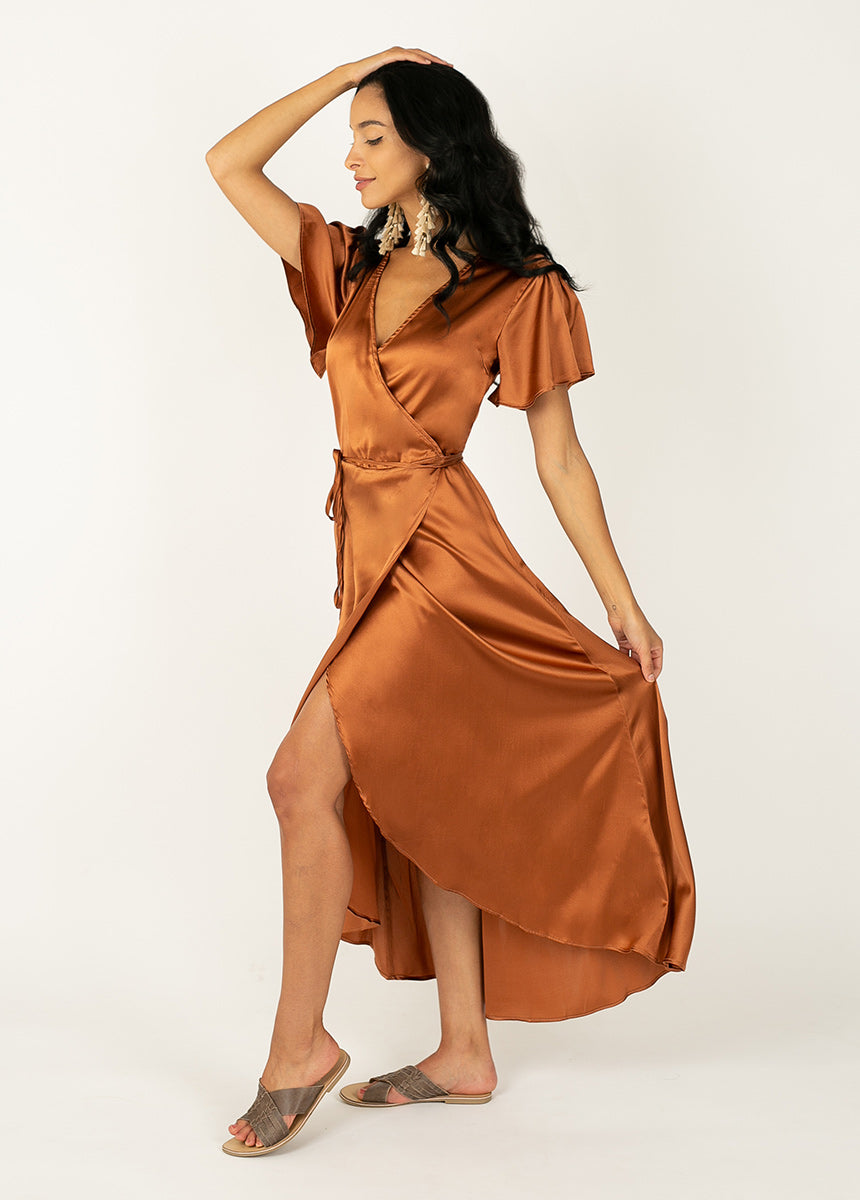 On-trend silk functional wrap midi dress for personalized comfort & style.