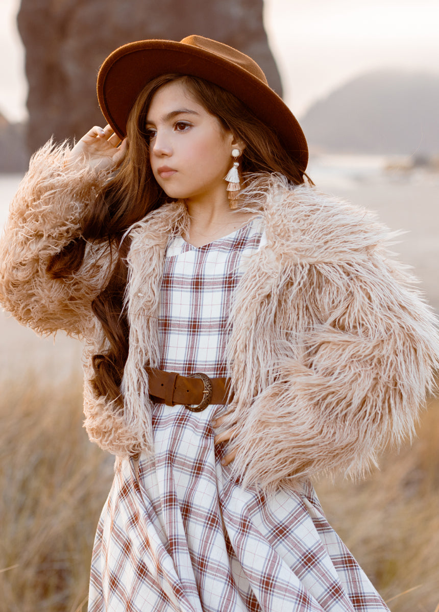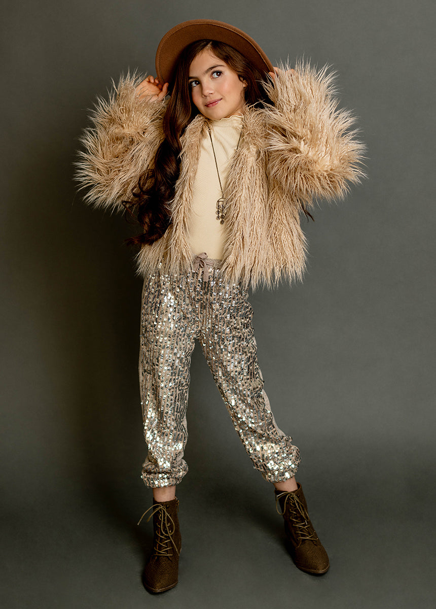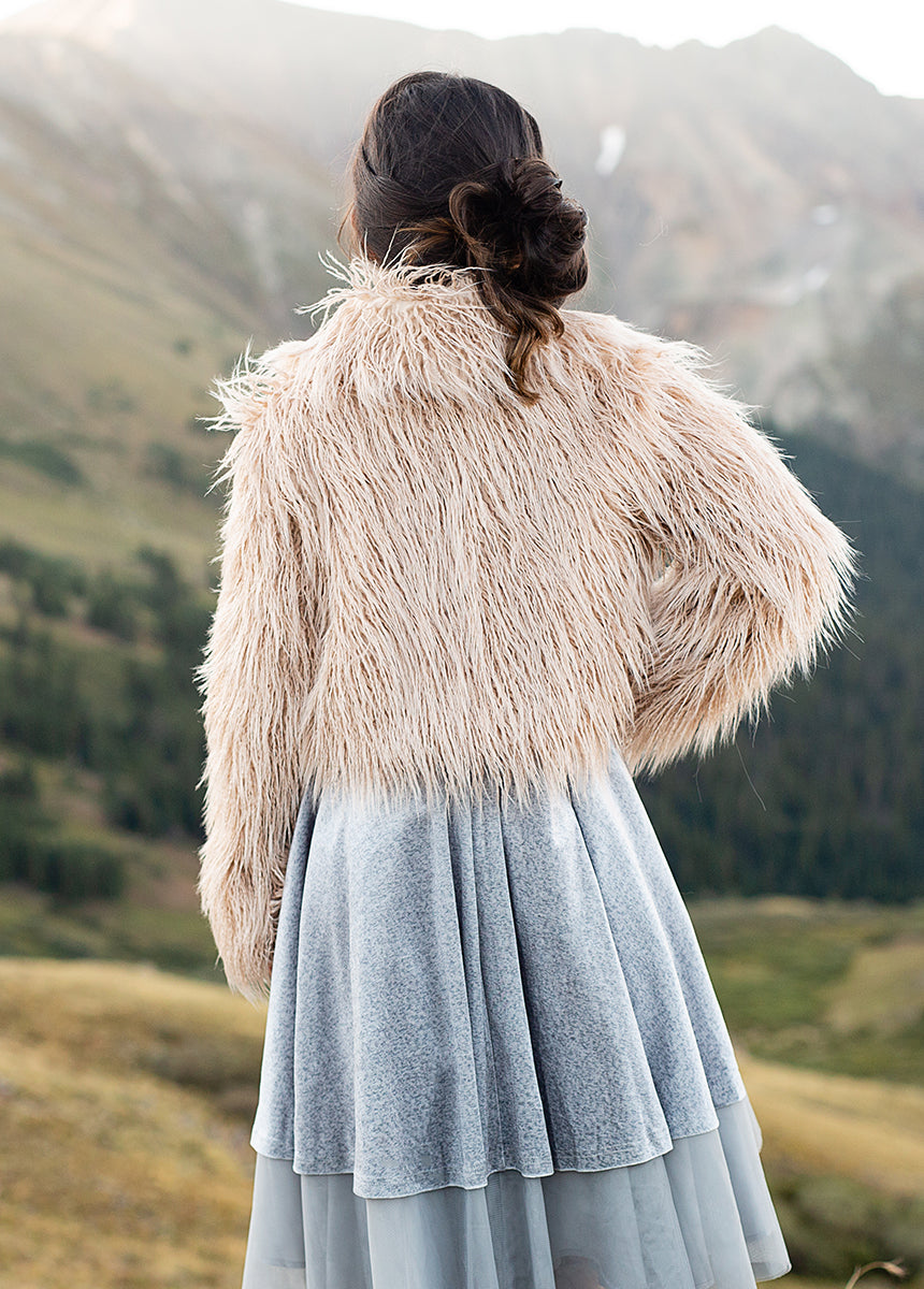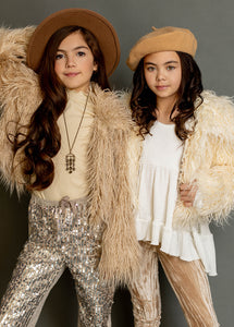 The beauty of a classic fur coat with none of the guilt. Beautiful soft jacket perfect for my texture sensitive child. She can’t stop betting the soft fur! Love it!