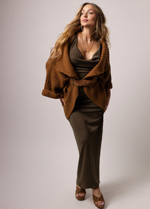 The Hadara Dress is designed to highlight your shape with a bold, deep plunging neckline and soft ruching at the bust that adds feminine texture. Narrow shoulder straps sweep over the shoulders and cross beautifully at the back, creating a delicate, eye-catching detail. The long, straight skirt falls gracefully to the ankles for a sleek, elongating silhouette. A side slit adds movement and a touch of allure while keeping the look refined. Finished with a clean hem, this dress blends modern sophistication with effortless boutique style.