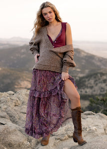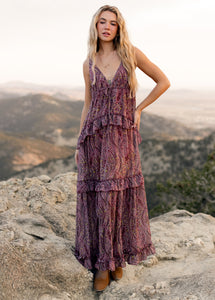 The Hadleigh Dress features a delicate lingerie-inspired bodice that brings a soft, feminine charm to your look. Adjustable shoulder straps with subtle strap adjusters allow for a customized and comfortable fit. A self-fabric drawcord at the waist creates gentle gathering, defining the silhouette while keeping it effortlessly relaxed. The full-length skirt is designed with multiple horizontal ruffle tiers that add movement, volume, and romantic flair. Perfect for warm-weather outings, vacations, or special occasions, this maxi dress blends elegance with easy, wearable comfort.