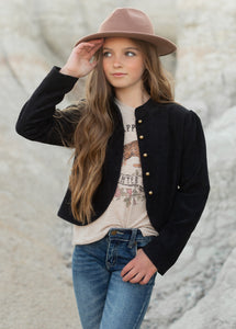 Love this shirt! Size is exact. Not quite a crop length. Perfect. Bought coordinating vest as well.