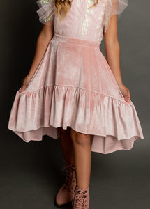 Discover the perfect skirt for your little one with our stylish midi high-low hem design! This high-waisted skirt features a large sweep, allowing for twirls and playful movement. Made from soft, stretchy velvet fabric, it offers comfort and a touch of luxury. The elastic waistband ensures a secure fit, making it easy for your child to wear all day. Ideal for both casual outings and special occasions, this versatile skirt is sure to be a favorite in their wardrobe!
