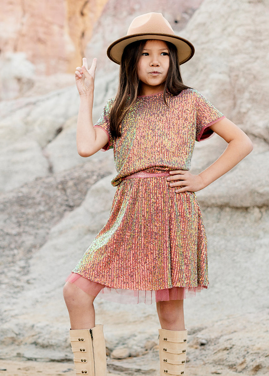 Whether it's a special occasion or a fun day out, this versatile piece is sure to make her shine. Mix and match with the matching skirt for a coordinated look or pair it separately to explore endless styling options.