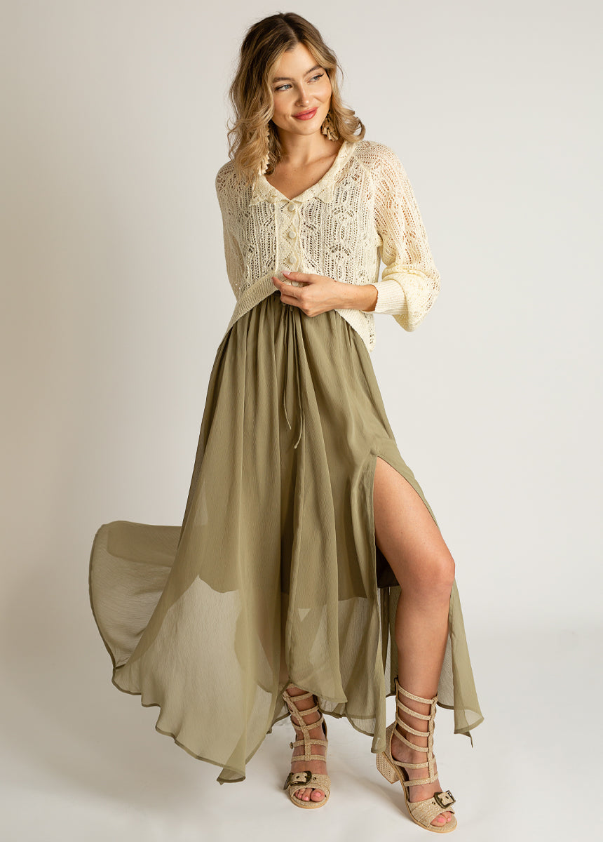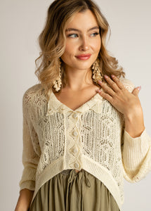 Transform your wardrobe with the addition of the Jelana Sweater in Cream. This versatile cardigan effortlessly blends fashion and comfort, adding a touch of femininity to your look.