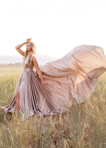 I got the june dress in stone for my 5 year wedding anniversary photoshoot. I knew my session was going to be on the beach at sunrise and thought this color would go perfectly! I also adore how you can tie the top how best fits you! This creates a truly custom feeling gown that is easy and natural feeling to wear!