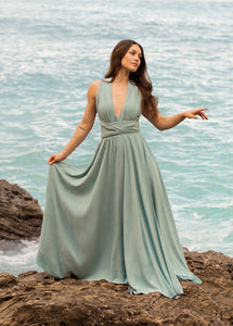 Turn heads in this versatile maxi dress, inspired by our best-selling June Impact Dress. Featuring an adjustable top with multiple ways to wear, this dress lets you customize your look for any occasion. The gathered waistband and center back zipper ensure a flattering, secure fit that’s both comfortable and stylish. Crafted from stretch woven fabric, it offers a perfect blend of elegance and flexibility. Whether for weddings, date nights, or special events, this maxi dress delivers timeless sophistication with a modern twist!