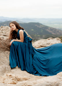 This dress is so unique and gorgeous. The dramatic train makes it suitable for formal and special occasions. We used it for a photo shoot and were so happy with the results. It’s definitely a head turner and a celebration of Joyfolie’s effortless elegance.