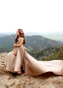 This dress is so unique and gorgeous. The dramatic train makes it suitable for formal and special occasions. We used it for a photo shoot and were so happy with the results. It’s definitely a head turner and a celebration of Joyfolie’s effortless elegance.