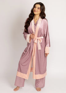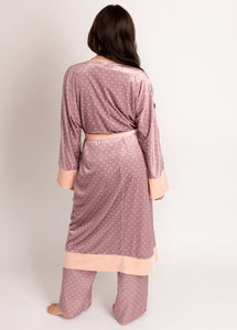 Indulge in ultimate comfort and style with our luxurious Kamila Robe, designed to elevate your lounging experience. Crafted from plush velvet, this robe promises a soft, sumptuous feel against your skin, making it ideal for those cozy nights in. Whether you’re enjoying a leisurely morning or winding down after a long day, this robe ensures you look effortlessly put together while feeling relaxed. Pair it with our Lyana PJs for a complete, matching set that exudes sophistication and charm. Elevate your loungewear collection with this must-have robe and experience the perfect blend of elegance and comfort.