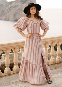 The Kara Set is a perfect blend of elegance and versatility. Featuring tunneled elastic details, tie it up for a playful bubble top look, or wear it relaxed and flowy for effortless boho elegance. Whether you're attending a special event or seeking an easy everyday look, the Kara Set brings timeless boho charm to your wardrobe.