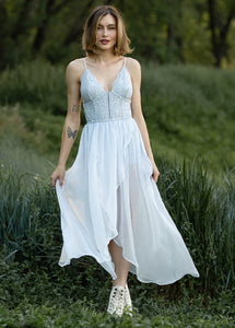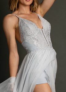 Elevate your wardrobe with the Katharina Dress in Dove, a stunning piece that combines style and versatility. This maxi-length dress features a unique high-low skirt with a sheer faux wrap design, making it perfect for any occasion. The built-in bodysuit with boyshort bottoms ensures comfort and coverage, allowing you to move with confidence. With a stretchy bodice and adjustable straps, you can achieve a perfect fit tailored to your style. Whether layered or worn on its own, the Katharina Dress guarantees you’ll stand out from the crowd!