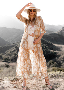 Easily enhance any outfit with this floor-length duster. It's perfect for layering over tops, bottoms, or dresses for a stylish bohemian touch. Its lightweight design makes it an essential layering piece that adds a touch of boho chic to your wardrobe.