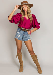 Drift into effortless elegance with our dreamy Kerra Top, a romantic blend of bohemian charm and feminine grace. Designed to be as versatile as it is enchanting.A tunneled hem offers styling versatility—wear it loose for an airy, relaxed silhouette or cinch it for a chic, cropped bubble effect. Whether paired with flowing skirts or high-waisted denim, the Kerra Top is your go-to for easy effortless styling.