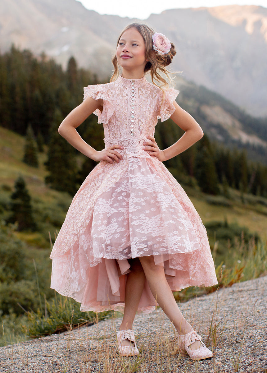 Pictures don’t do this dress justice! Beautiful details with the lace. Bought this for our daughters first communion and everyone had something to say about it. Very happy with our purchase.