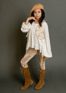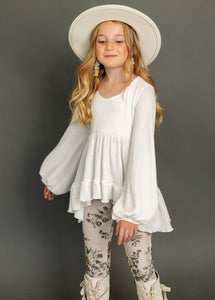 Introducing the Laila Henley Top in Cream, the ultimate wardrobe staple for your little one. This versatile long sleeve top features stylish balloon sleeves and a trendy high-low hem, making it perfect for any occasion. Crafted from cozy waffle knit fabric, it offers both comfort and style, whether dressed up or down. The lined front bodice adds an extra layer of quality and durability. Elevate her everyday look with the Laila Henley Top, a must-have addition to her collection.