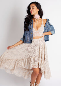 I mainly ordered this set for the skirt, and it was totally worth it - super flowy, photographs beautifully, and the perfect feminine yet dark skirt for my vibe. The bralette is okay - I am small-busted and even with a small and the straps tightened, I don't feel like there's great support/the cups feel a bit loose. That said, I've still worn the set out to dinner, street festivals, etc. The skirt gets more wear than the set (and it looked great for a photoshoot with my horse!).
