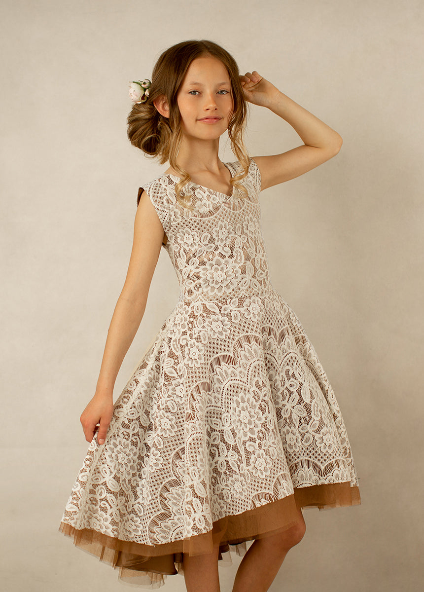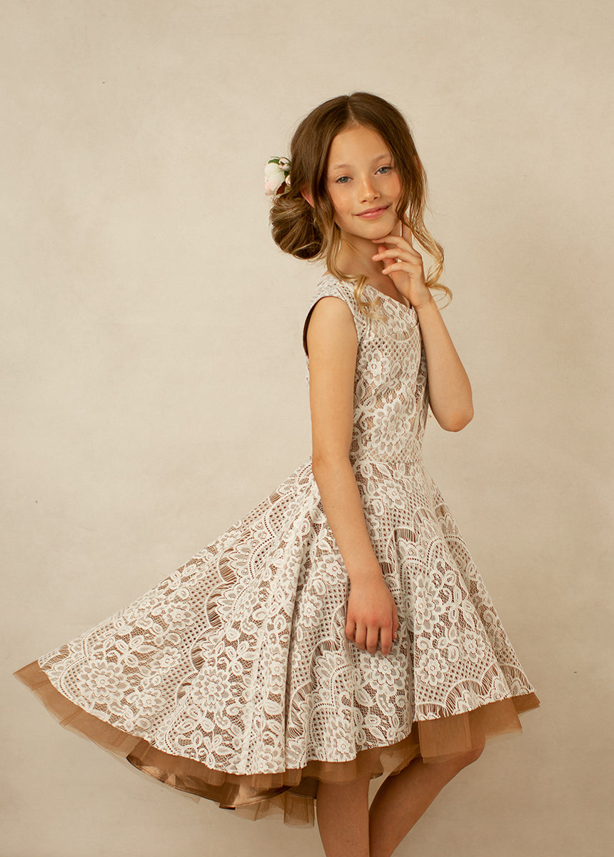 Lezah Flower Girl Dress in Chai