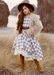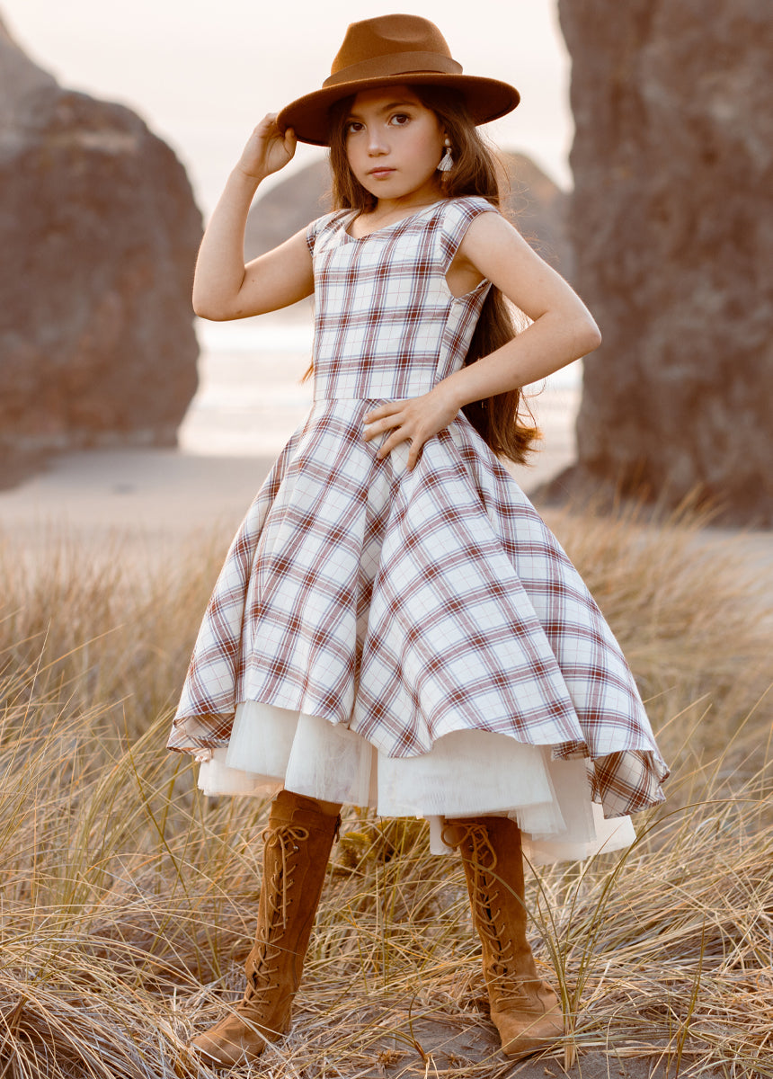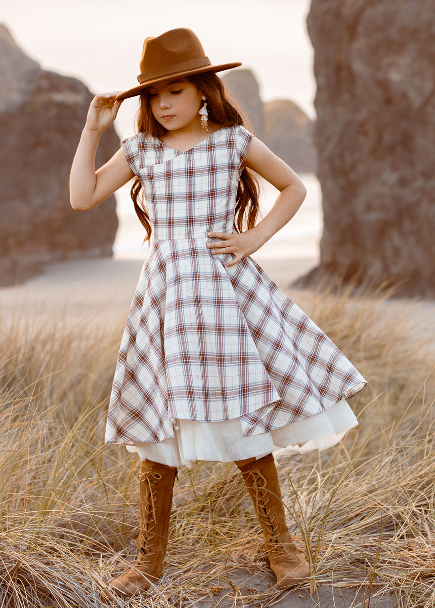 The Lezah Dress in Cream Plaid is the ideal addition to your little one's wardrobe, blending timeless style with girly charm. Its classic plaid print exudes a playful elegance, while the petticoat design adds a delightful vintage touch. Featuring an asymmetrical neckline and cute cap sleeves, this dress ensures she stands out at any occasion. The invisible zipper at the center back allows for easy dressing and a polished finish. Elevate her style with the enchanting Lezah Dress, perfect for special events or everyday wear!