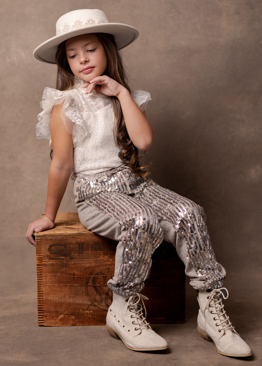 Add a touch of magic to your little one's wardrobe with our Libbie Pant. These comfortable joggers are adorned with shimmering sequins, allowing your child to showcase her unique personality with every step. Designed to blend style and comfort, these sequined joggers are perfect for any occasion, from playdates to special events. Made from soft, breathable fabric, they ensure all-day comfort while making your little one shine brightly.