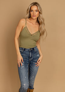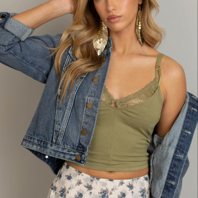 Add a flirty touch to your wardrobe with this cropped cami, featuring a faux lace bralette design that's perfect for layering or wearing on its own. The sweetheart neckline and rib knit fabric combine comfort with a chic, feminine vibe. Adjustable straps ensure a customizable fit, making it a versatile piece for any occasion. Pair it with high-waisted jeans, skirts, or shorts for an effortlessly trendy look. This stylish cami is a must-have for any women’s clothing collection, blending casual comfort with elevated detail.