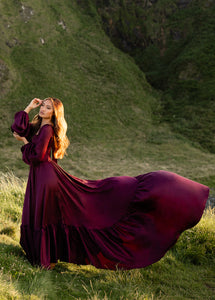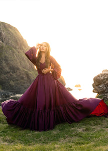 Embodied by a captivating textured shine and adorned with a button placket bodice, along with a striking train, this sweeping-maxi draws inspiration from our enchanting June dress.