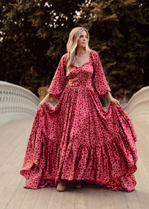 Embodied by a captivating textured shine and adorned with a button placket bodice, along with a striking train, this sweeping-maxi draws inspiration from our enchanting June dress.