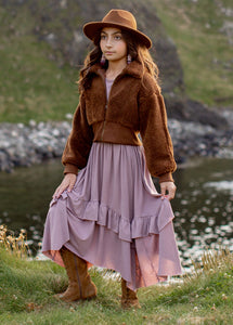 This jacket is such a dream! The lace detailing is absolutely gorgeous and makes it feel so luxurious. It’s super soft and cozy but still lightweight, perfect for layering. I love how versatile it is—works great with dresses or jeans. Definitely one of my favorite pieces from this store!