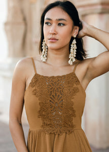 Get ready to spice up your wardrobe with the Mala Maxi Dress in Cumin! This playful summer piece adds a unique touch to any occasion with it's delicate detailing.
