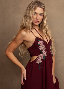 Step into elegance with our stunning maxi dress featuring intricate embroidery details that elevate any occasion! This beautifully designed dress showcases a flattering V-neckline and functional neck strap details for a chic touch. With stylish side keyholes and adjustable straps, it offers a customizable fit that enhances your silhouette. The invisible back zipper ensures a seamless look, while the fully lined interior provides comfort and confidence. Perfect for weddings, parties, or a night out, this dress is a must-have addition to your wardrobe!