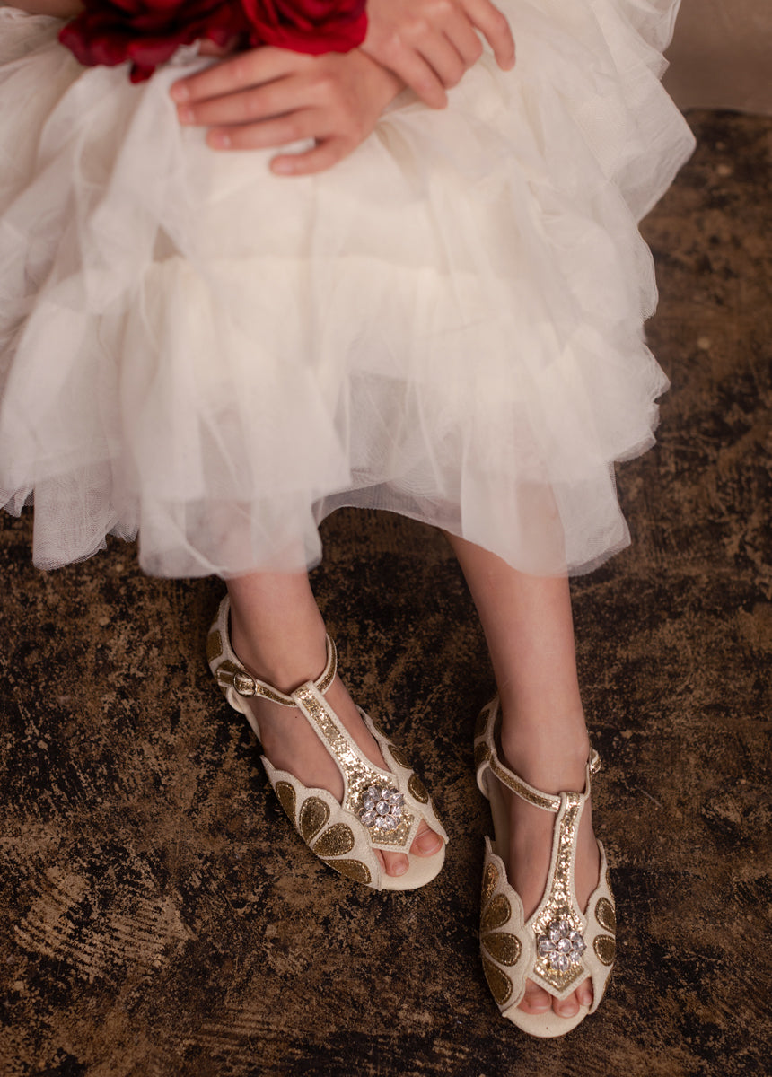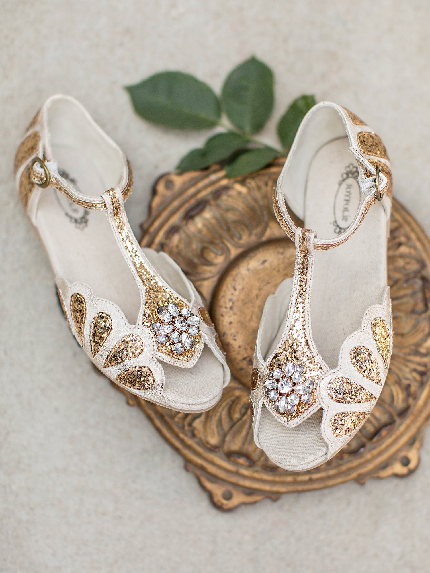 Make your flower girl shine with these gorgeous sparkly shoes, featuring glitter and gemstone accents. The peep-toe design adds an extra touch of elegance to these already stunning shoes. Perfect for any formal occasion, your flower girl will feel like a star in these eye-catching shoes. Comfortable and stylish, these shoes will keep your flower girl happy and on her feet all day long. Add a touch of sparkle to her ensemble with these fabulous shoes.
