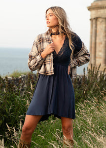 Everyone looks good in plaid & I’ve added this piece to my staples. It has a shorter front & the back is longer, which surprisingly I really like because it’s not too cropped which I like. It hits right where my pant/belt line generally is in the front, & the back covers my booty a bit. It is oversized fit which I also like but for reference I am 5’7” 150lbs 34C & normally wear a M or L in shirts, however I bought an XS & it fits perfectly due to the oversized fit. Highly recommend!