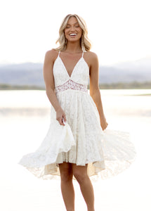 Turn heads in the Marline Dress, a dreamy statement piece designed for any special occasion. With its romantic high-low hemline and intricate lace details, this dress is both elegant and effortlessly wearable. Whether you're dressing up for a wedding, date night, or a special event, the Marline Dress brings romance and sophistication to your wardrobe. Pair it with strappy heels for a polished look or add a leather jacket for an unexpected edge. However you style it, this dress is made to stand out!
