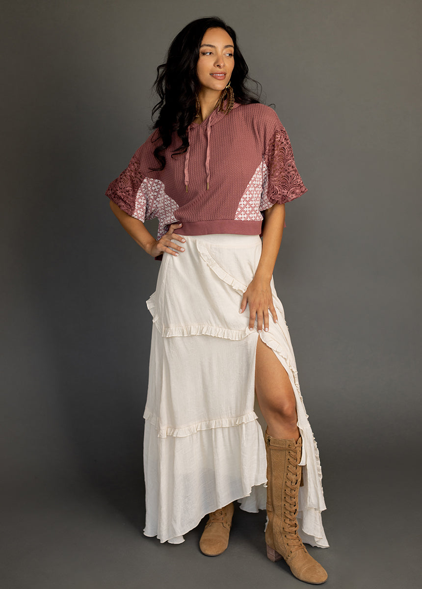 Upgrade your hoodie game with the Matyson Hoodie in Rosette, a boho-inspired piece that redefines casual chic. Its boxy, cropped fit and drop shoulder design create a trendy silhouette, making it a standout addition to your wardrobe. The oversized 3/4 balloon sleeves add a playful touch, perfect for layering or wearing on their own. Complete with a hood and drawstrings, this hoodie combines comfort and style effortlessly. Pair it with a skirt for a chic look or with jeans for a laid-back vibe—either way, the Matyson Hoodie is sure to turn heads!