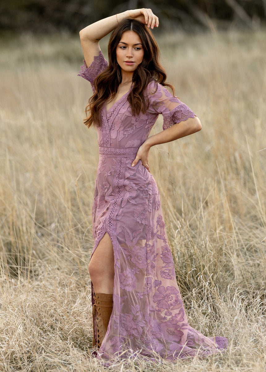 Slip into the May Dress for a boho, feminine look. The delicate lace adds a touch of romance while the v-neckline elongates and flatters your figure. Perfect for a date night or a girls' night out, this dress will make you feel confident and beautiful.