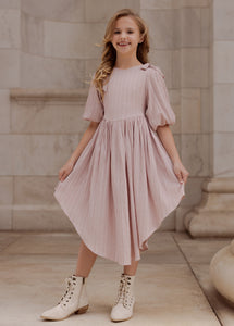 Meet the Maylie Dress—a charming blend of playful detail and timeless style for your little one. With its wide, self-tie shoulder straps delicately finished into bows, this dress brings a touch of whimsy to a classic silhouette. Perfect for special occasions or everyday adventures, this dress lets her express her style with confidence and charm.