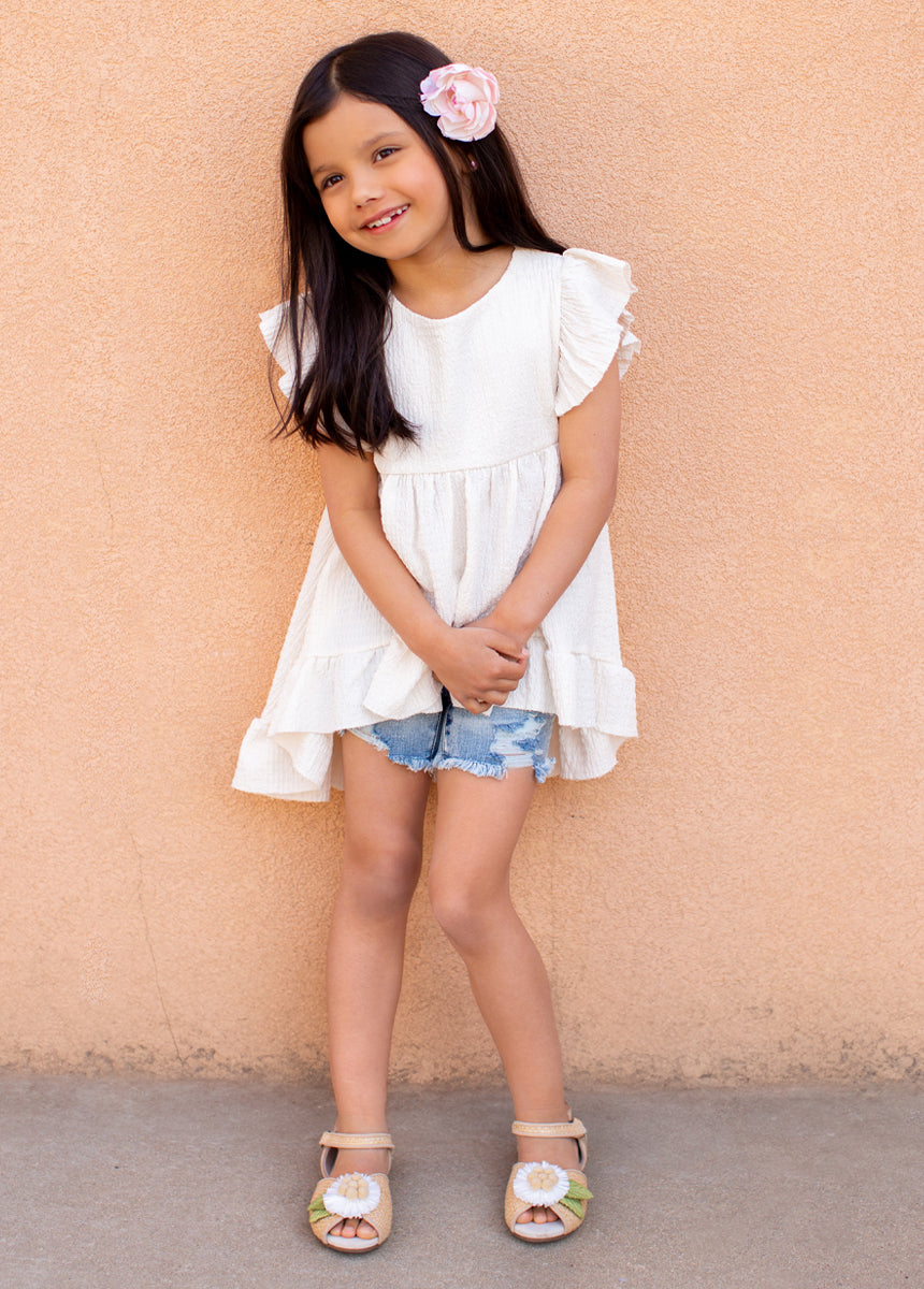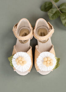 Step into spring with a dose of girly charm with our Mercedes Peep Toe Flats in Straw. These perfect spring flats elevate any outfit with their playful and boho design.