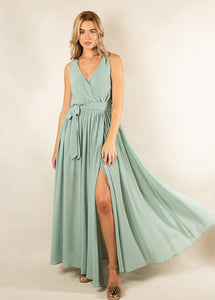 The Miriam bridesmaid dress is a classic and feminine choice for any bridal party. With a maxi length, sleeveless silhouette, and a flattering v-neckline, this dress exudes sophistication and timeless elegance. The tie at the waist adds a touch of feminine charm. Dress your bridesmaids in the Miriam dress and let them shine on your special day with its perfect blend of style and ease.
