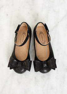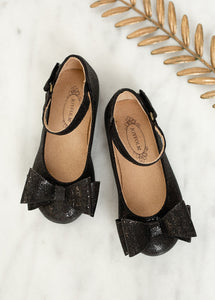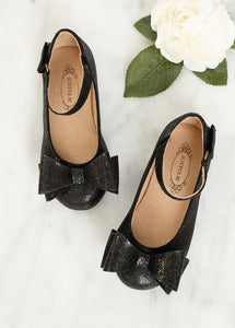 Elevate her style with our flats adorned with a playful bow and sparkle texture. Available in an array of vibrant colors.
