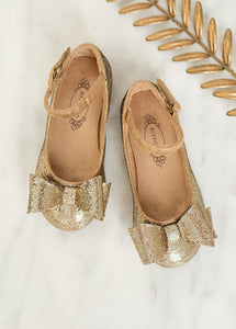 Elevate her style with our flats adorned with a playful bow and sparkle texture. Available in an array of vibrant colors.