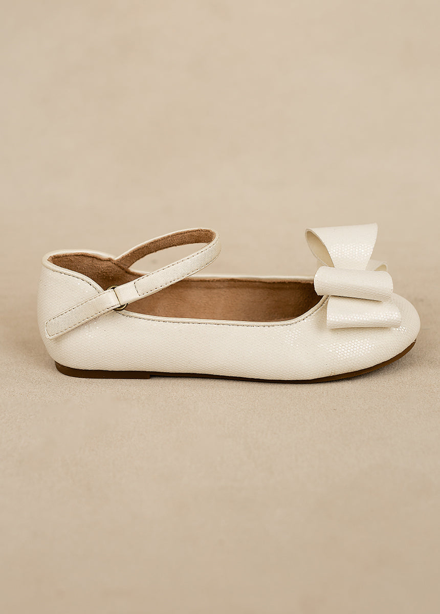 Your flower girl will look adorable and feel comfortable in these sweet flats, perfect for any wedding or special occasion. Featuring a dainty bow embellishment, these shoes are the epitome of girlish charm. The flat heel ensures your little one can walk, dance, and play with ease, while the easy closure makes them easy to wear. These versatile flats can be paired with any flower girl dress, adding the perfect finishing touch to her outfit.