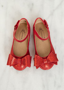 Elevate her style with our flats adorned with a playful bow and sparkle texture. Available in an array of vibrant colors.