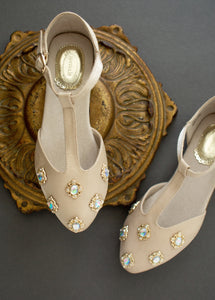 My daughter loved these and they looked great with her outfit. The jewels have an iridescence to them and look really nice, and the champagne color can go with anything.