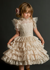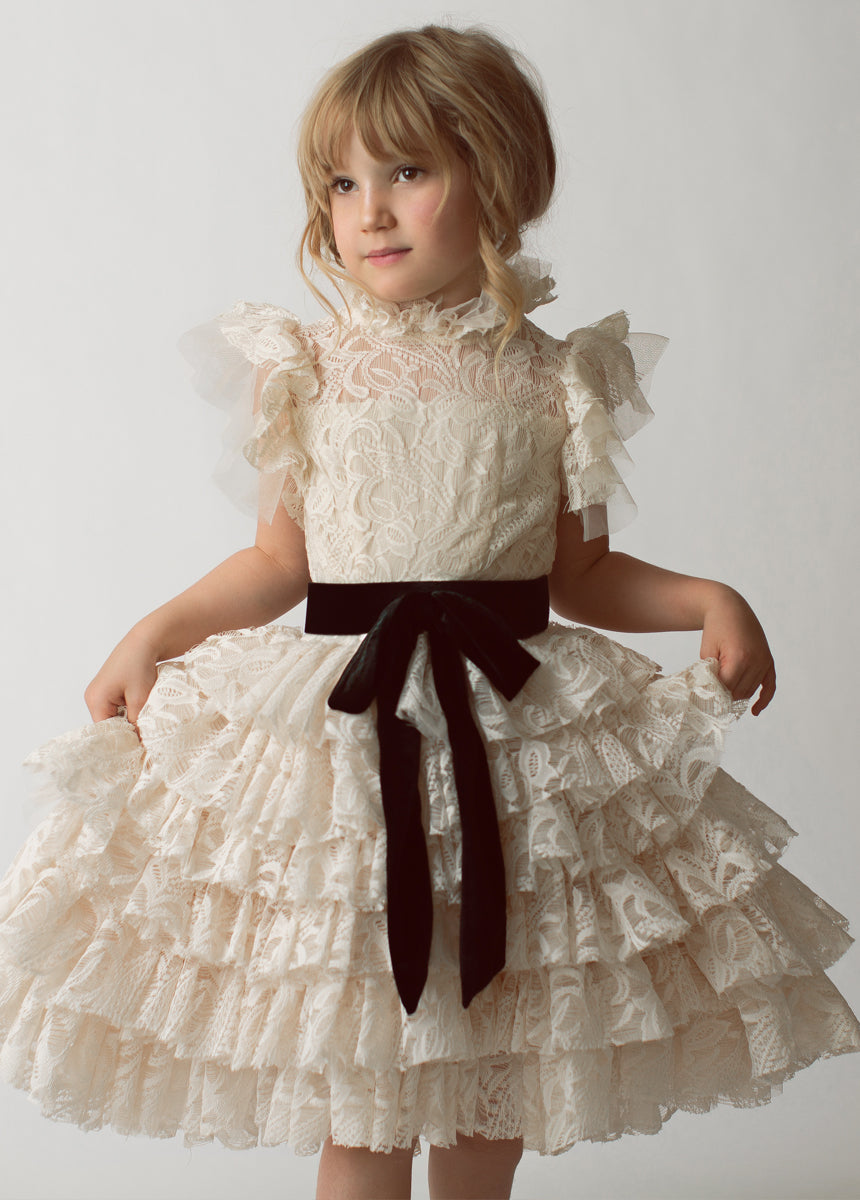 Make a statement with this voluminous dress, featuring cascading ruffles, dramatic sleeves, and intricate lace details. A fan favorite, this dress is designed to captivate and impress, making it the perfect choice for your little one’s special occasions. With its eye-catching design and elegant touches, it’s a standout piece that combines style and sophistication effortlessly.