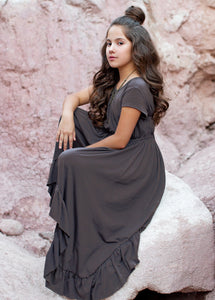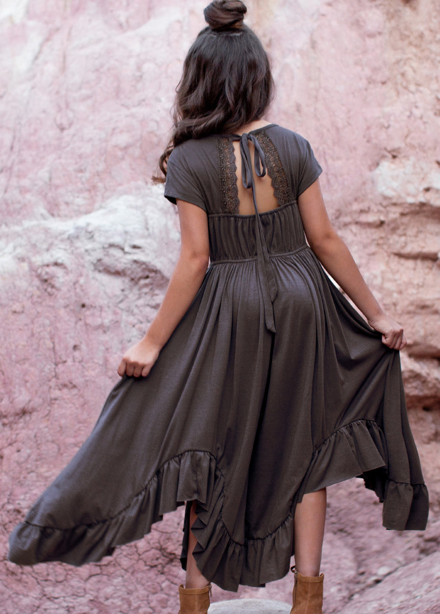 This jumpsuit was PERFECT for our family photos. I desperately was searching for something for my oldest daughter who STRONGLY DISLIKES wearing dresses. This jumpsuit was perfect because it gave the illusion of a dress, but my daughter felt comfortable and confident in it! The detail on the back is gorgeous as well! We are so happy we were able to score this beautiful piece!