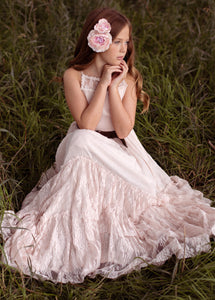 Look effortlessly elegant and playful all at once with this fan favorite boho maxi dress. Featuring a full tiered skirt with lace ruffles and a scalloped lace detail in the back. A soft rayon adorned with soft lace, this dress zips up the side with a beautiful tie at the back neckline and elastic cinch back for an easy fit.